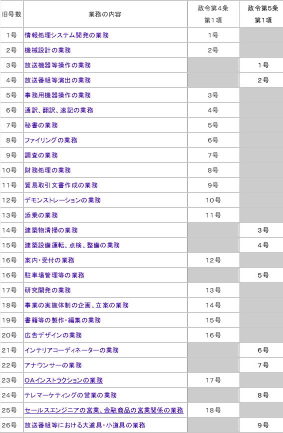 →区分基準=昭和61年労働省告示37号、平成24年厚労省告示518号、質疑応答集