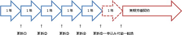 *1年契約の場合は,5回目の更新が成立した時点で,労働者は無期転換を申し込むことができる。