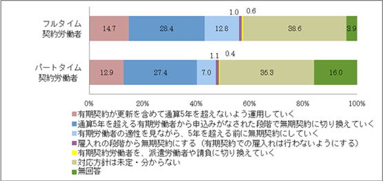 「5年ルール」に対応した有期労働契約のあり方として,有期労働契約が更新を含めて通算5年を超えないように運用していく。
