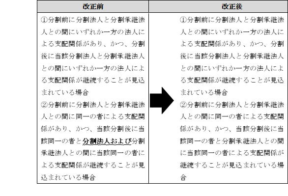 (2)適格分割の要件緩和(平成29年10月の税制改正)